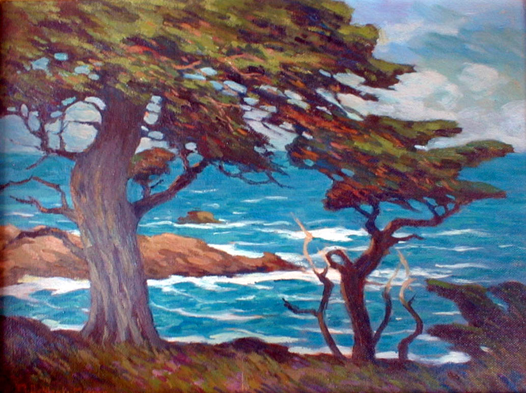 Morgan also survived the great 1906 San Francisco Earthquake and Fire, actually recording much of the destruction in sketches and drawings. She then settled in Carmel and became famous for her powerful, poetic paintings of cypresses and pines..